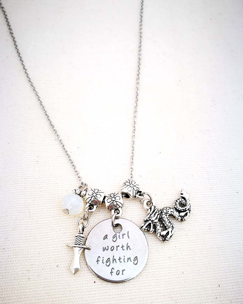 La bella e la bestia Until last petal falls - Finchè l'ultimo petalo cada A tale as old as time - Una storia vecchia come il tempo Collana a tema Disney con medaglietta in acciaio stampato Catenina in acciaio anallergico lunghezza media (68 cm) Chiusura fissa con moschettone a semino Ciondoli in rame placcato, nickel free Perlina colorata in cristallo Spedita nel suo sacchettino in organza con cartellino dedicato MATERIALI: catenina in acciaio mezza misura. L'acciaio non ossida ed è resistente agli agenti aggressivi perciò può essere indossato sempre chiusura fissa con moschettone medaglietta in acciaio con frase stampata a tema ciondoli in rame placcato nickel free. Non consiglio di metterli a contatto con prodotti troppo aggressivi: detersivi, profumi, saponi, acqua di mare o acqua della piscina perchè, a lungo andare, potrebbero scalfirne l'argentatura perlina in cristallo