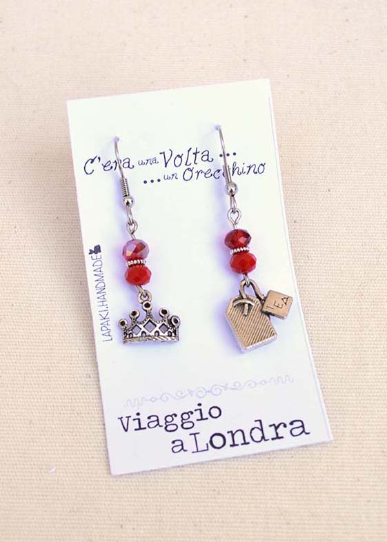 Per chi ha sempre la valigia pronta Ciondoli in rame placcato, nickel free (non consiglio di metterli a contatto con prodotti troppo aggressivi: detersivi, profumi, saponi, acqua di mare o acqua della piscina perchè, a lungo andare, potrebbero scalfirne l'argentatura) Monachelle in acciaio anallergico Rifinito con perline in pietra (diaspro paesina) Spediti con il cartoncino in un sacchettino di organza MATERIALI: Monachelle in acciaio anallergico Ciondoli in rame placcato (nickel free) Perline in pietra (diaspro paesina) Gommini ferma-orecchino in plastica