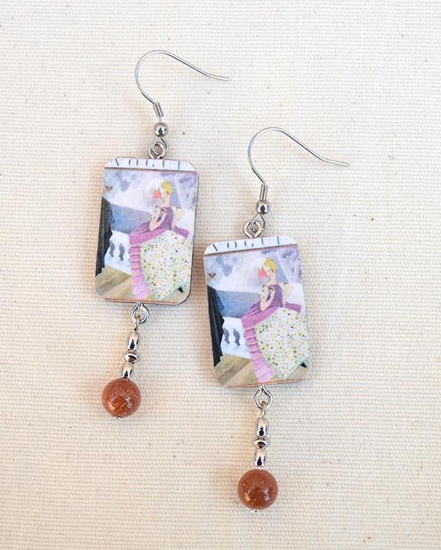 Orecchini realizzati con tecnica a decoupage su legno.