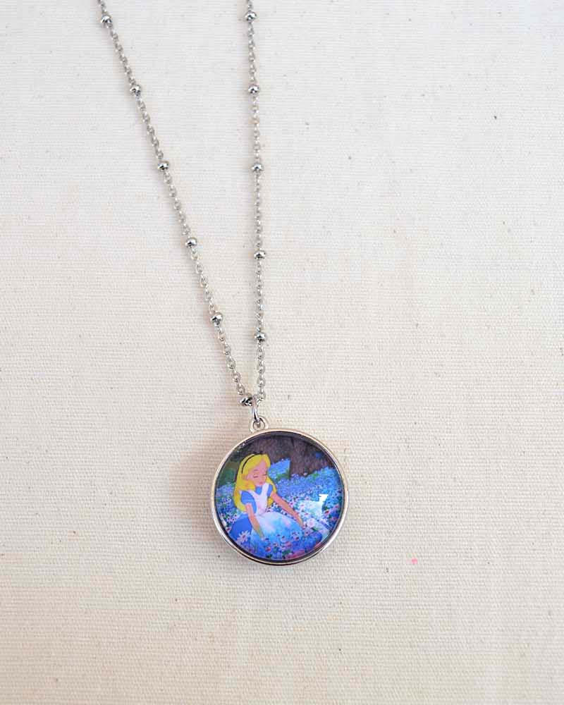 Collana con illustrazione a tema Alice nel Paese delle Meraviglie e frase: