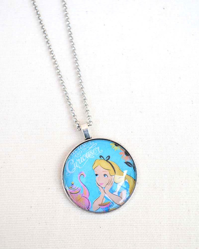 Collana con illustrazione a tema Alice nel Paese delle Meraviglie Medaglione a cabochon con stampa a tema e copertura in vetro Catenina in acciaio anallergico lunga 80 cm (non ossida ed è resistente agli agenti aggressivi, perciò può essere indossata sempre) Chiusura fissa con moschettone a semino Spedita nel suo sacchettino in organza con cartellino dedicato MATERIALI: catenina in acciaio lunga (80 cm circa) chiusura fissa con moschettone medaglione a cabochon con stampa copertura in vetro