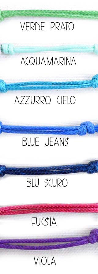 Il bracciale è realizzato con un cordino da 2 mm in poliestere, materiale molto resistente all'usura.