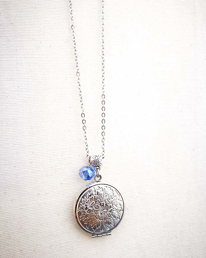 Collana con pendente apribile portafoto. La catenina è in acciaio anallergico, non regolabile, misura medio lunga. Rifinita con una perlina pendente in cristallo colorato. Il pendente è lavorato con un disegno fiorato intagliato, si può aprire per mettere all'interno una foto. Viene spedito con un messaggio scelto a caso fra quelli proposti qui sotto. Se volete un messagio specifico lo potete segnalare in fase d'ordine lasciando un commento oppure contattandomi. Se, invece, vuoi inserire una foto, scrivimi pure e ti saprò aiutare. Messaggi segreti: (Se ne vuoi uno in particolare scrivilo in fase d'ordine oppure contattami, altrimenti verrà scelto a caso in base alla disponibilità) - Sei tutti i limiti che superi - Oggi amati un pò di più - Vivi con passione, ridi di cuore, ama profondamente - Sogna la vita a colori - Non restare mai dove non riesci a fiorire - é tutto dentro di te, non smettere di cercare - Ricordati di essere felice - La vita è questa: niente è facile e nulla è impossibile - Se vuoi volare rinuncia a tutto ciò che ti pesa - Abbi cura di splendere - Fai un dispetto alla tristezza: sorridi MATERIALI catenina in acciaio anallergico, lunghezza 70 cm chiusura fissa, non regolabile, con moschettone a semino perlina in cristallo colorato ciondolo a cuore apribile in argento tibetano nickel free dimensione cuore 3 cm
