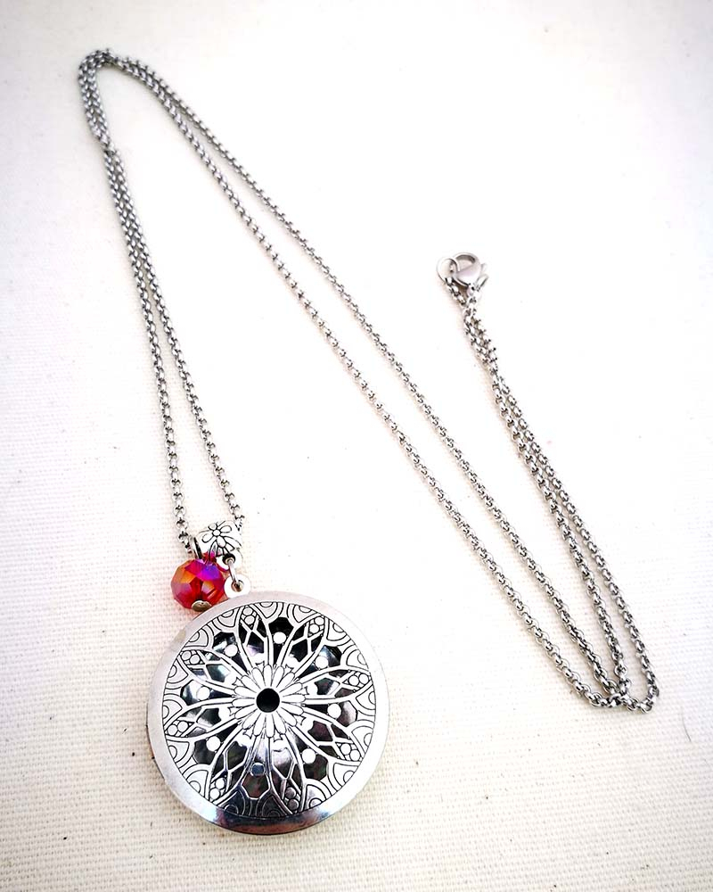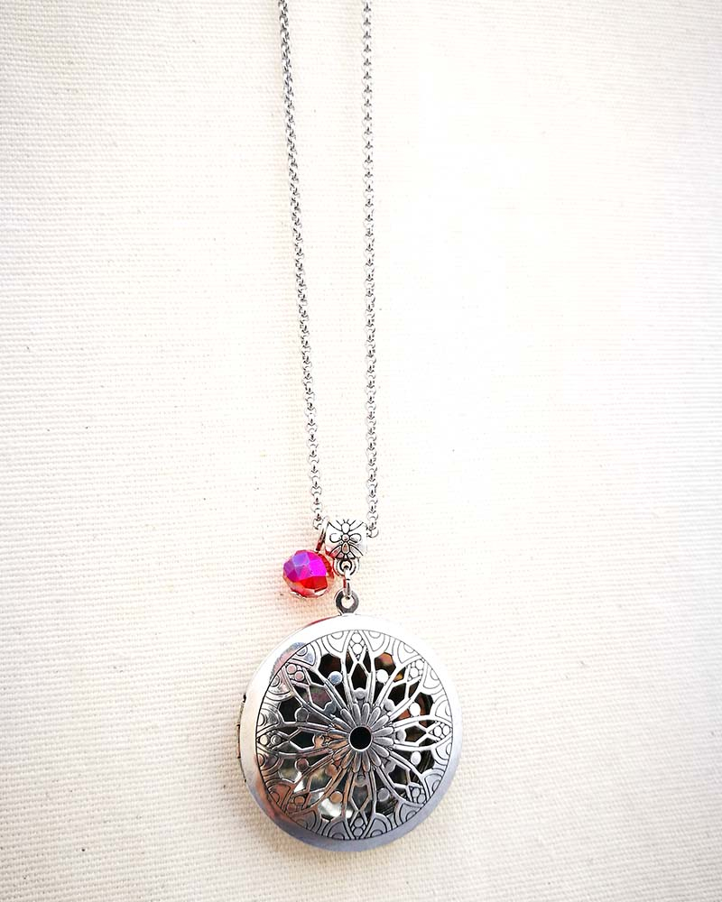 Collana con pendente apribile portafoto. La catenina è in acciaio anallergico, non regolabile, misura medio lunga. Rifinita con una perlina pendente in cristallo colorato. Il pendente è lavorato con un intaglio fiorato, si apre a conchiglia e all'interno si può mettere una foto. Viene spedito con un messaggio scelto a caso fra quelli proposti qui sotto. Se volete un messagio specifico lo potete segnalare in fase d'ordine lasciando un commento oppure contattandomi. Se, invece, vuoi inserire una foto, scrivimi pure e ti saprò aiutare. Messaggi segreti: (Se ne vuoi uno in particolare scrivilo in fase d'ordine oppure contattami, altrimenti verrà scelto a caso in base alla disponibilità) - Sei tutti i limiti che superi - Oggi amati un pò di più - Vivi con passione, ridi di cuore, ama profondamente - Sogna la vita a colori - Non restare mai dove non riesci a fiorire - é tutto dentro di te, non smettere di cercare - Ricordati di essere felice - La vita è questa: niente è facile e nulla è impossibile - Se vuoi volare rinuncia a tutto ciò che ti pesa - Abbi cura di splendere - Fai un dispetto alla tristezza: sorridi MATERIALI catenina in acciaio anallergico, lunghezza 70 cm chiusura fissa, non regolabile, con moschettone a semino perlina in cristallo colorato ciondolo a cuore apribile in argento tibetano nickel free dimensione 2,5 cm