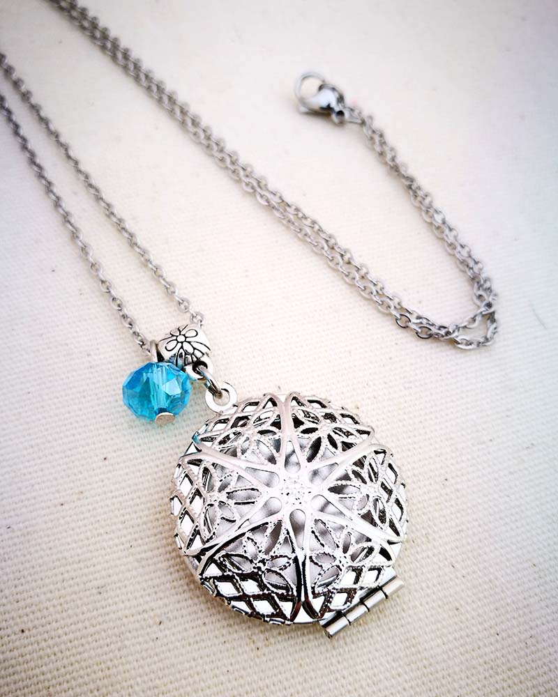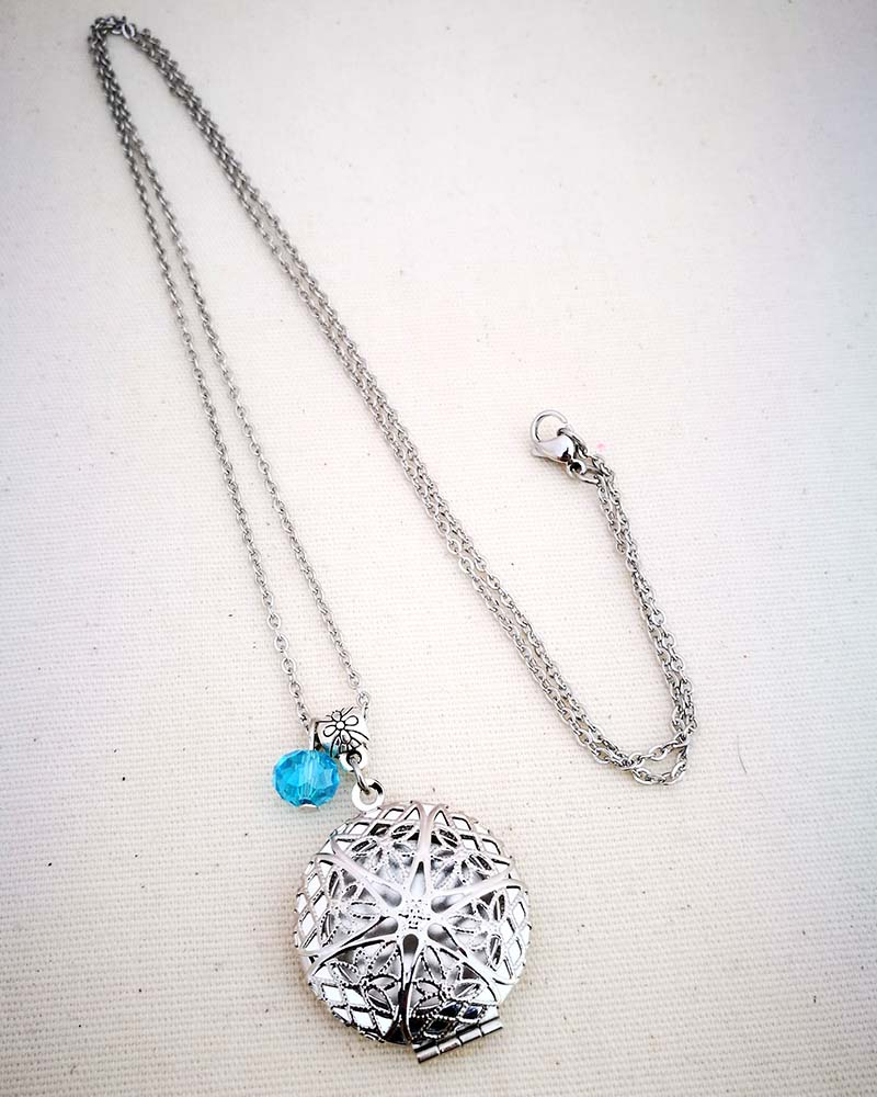 Collana con pendente apribile portafoto. La catenina è in acciaio anallergico, non regolabile, misura medio lunga. Rifinita con una perlina pendente in cristallo colorato. Il pendente è lavorato con un intaglio fiorato, si apre a conchiglia e all'interno si può mettere una foto. Viene spedito con un messaggio scelto a caso fra quelli proposti qui sotto. Se volete un messagio specifico lo potete segnalare in fase d'ordine lasciando un commento oppure contattandomi. Se, invece, vuoi inserire una foto, scrivimi pure e ti saprò aiutare. Messaggi segreti: (Se ne vuoi uno in particolare scrivilo in fase d'ordine oppure contattami, altrimenti verrà scelto a caso in base alla disponibilità) - Sei tutti i limiti che superi - Oggi amati un pò di più - Vivi con passione, ridi di cuore, ama profondamente - Sogna la vita a colori - Non restare mai dove non riesci a fiorire - é tutto dentro di te, non smettere di cercare - Ricordati di essere felice - La vita è questa: niente è facile e nulla è impossibile - Se vuoi volare rinuncia a tutto ciò che ti pesa - Abbi cura di splendere - Fai un dispetto alla tristezza: sorridi MATERIALI catenina in acciaio anallergico, lunghezza 70 cm chiusura fissa, non regolabile, con moschettone a semino perlina in cristallo colorato ciondolo a cuore apribile in argento tibetano nickel free dimensione 2,5 cm
